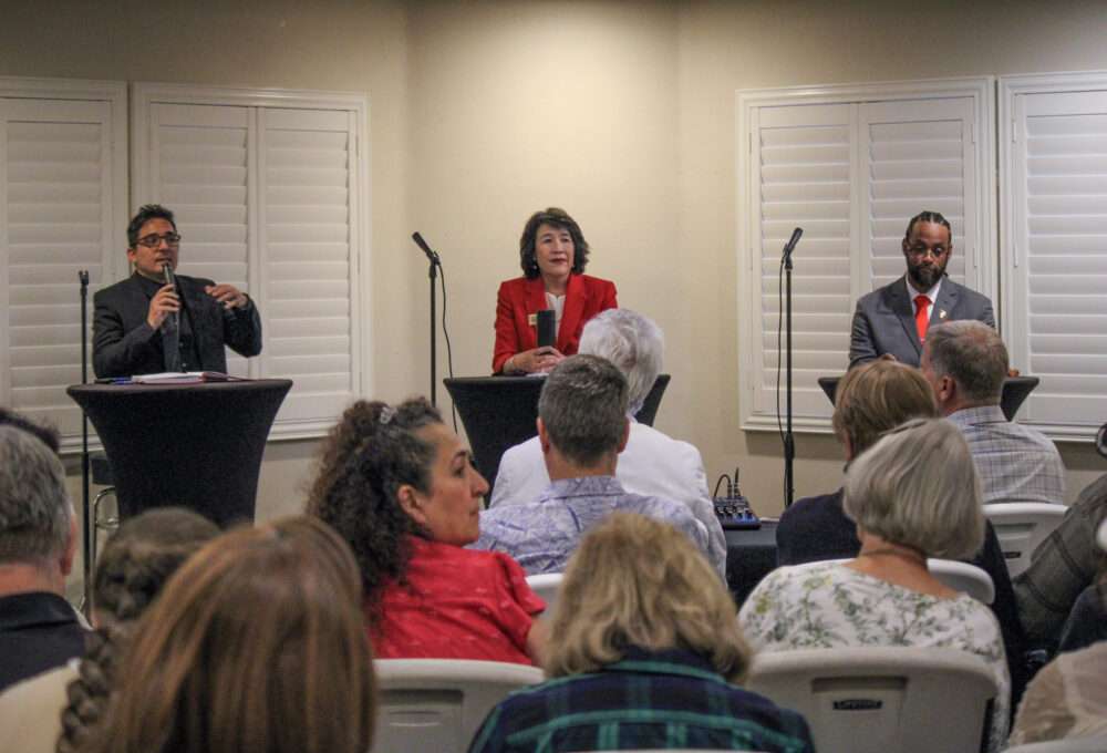 The three Republican candidates for the 40th Assembly District primary participated in a locally hosted debate Thursday evening, answering submitted questions as well as each other’s. Candidates Andreas Farmakalidis, Elizabeth Wong Ahlers and Rickey Tracy Hayes II shared their views on American manufacturing, home ownership, taxes and political theory at the Valencia Northbridge Clubhouse. The event was hosted by the Santa Clarita Valley Congress of Republicans, a local